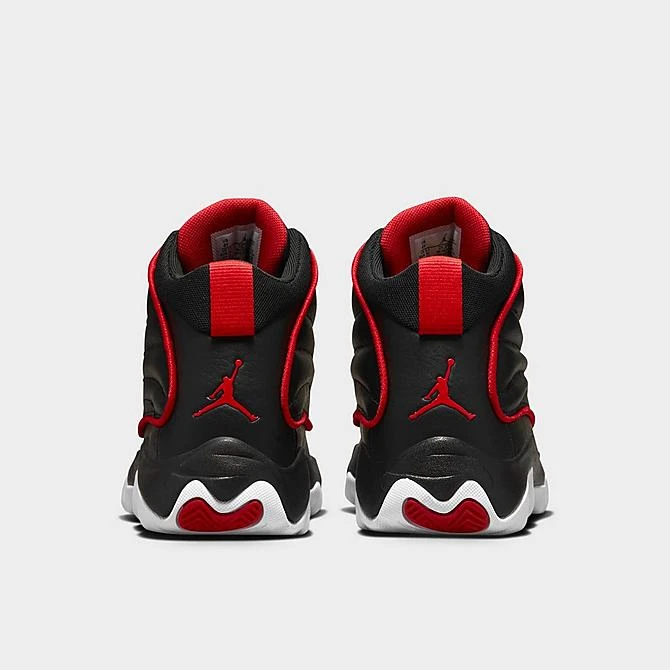 Dressed in a smooth premium leather upper, the Big Kids’ Jordan Pro Strong Basketball Shoes sports a supportive three-quarter profile with zoned padding at the tongue, collar and foam midsole. Featuring a sleek design, contrast piping frames the quilted sides for elevated style. While the partially concealed lace-up vamp creates a clean look. Finished with pops of color and signature branding, these kicks perform on the court and flexes off the court.