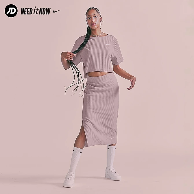 Add some texture to your look when you wear the Women’s Nike Sportswear Ribbed Jersey High-Waisted Skirt. This snug-fitting and stretchy skirt has a ribbed texture that will help take your look to the next level.